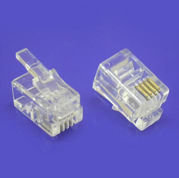 Konektor 6/4 RJ11 na drát, použití především pro telefonní síťové instalace.