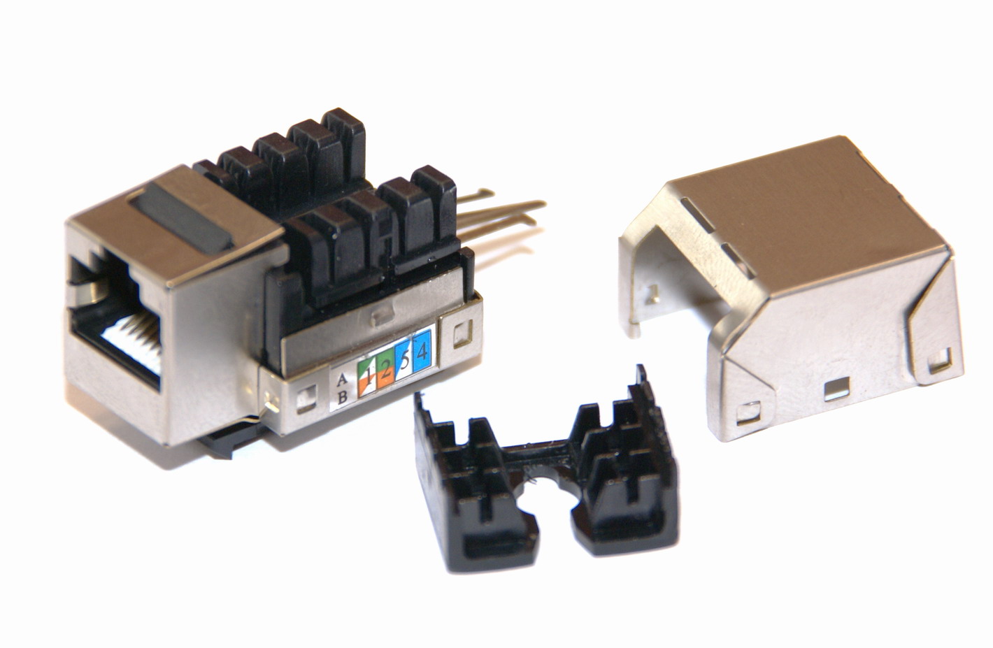 Keystone Cat 5e FTP, použití pro zásuvky LE307K-2, ABB Tango, Time, Swing atd. Jsou vybaveny oky pro fixování kabelu stahovacím páskem. |